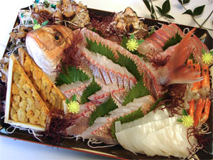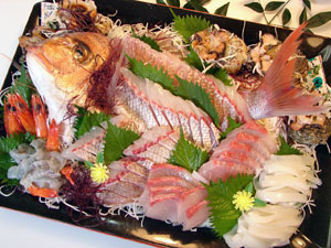 鯛、うに、はまち、さざえ、甘エビ、白いか